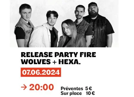Le groupe local Fire Wolves sort son album de Rock bien gratiné. Groupe humaniste qui varie les émotions au rythme des riffs de grattes et des basses-batteries. Pour partager la scène, ce sera leurs amis d’Hexa qui seront présents. Tout autant rock, ils reprennent des classiques de 80’ à aujourd’hui.