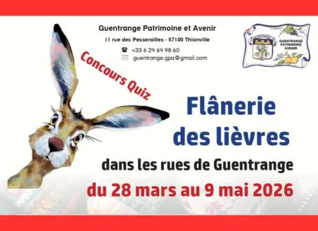 Des lièvres numérotés de 01 à 10 ont été disséminés dans Guentrange et forment un circuit qui doit permettre de découvrir les secrets architecturaux et historiques de cet ancien village viticole. Chaque lièvre comporte une question à laquelle il convient de répondre et de la reporter sur le bulletin de participation. Ces bulletins sont à déposer au plus tard le 12 mai 2026 dans les boîtes aux lettres auprès de la Maison des Quartiers ou au siège de l’association à l’adresse de l’en-tête.