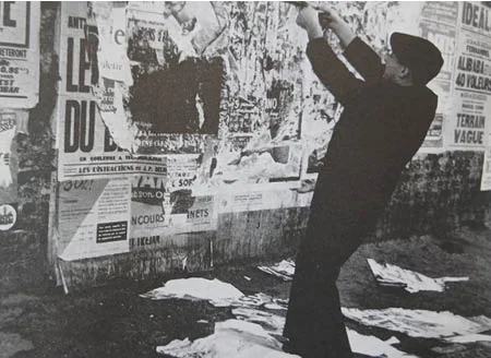 Les murs des villes des années soixante étaient recouverts de nombreuses affiches posées librement. De jour en jour, les affiches se superposaient, se transformaient, étaient déchirées.