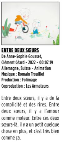 Pour les tout petits de 3 à 5 ans, c'est aussi la fête du court-métrage avec FAIRE ÉQUIPE (programme de 5 courts). Un atelier motricité est proposé à la suite de la projection sur inscription et dans la limite des places disponibles.