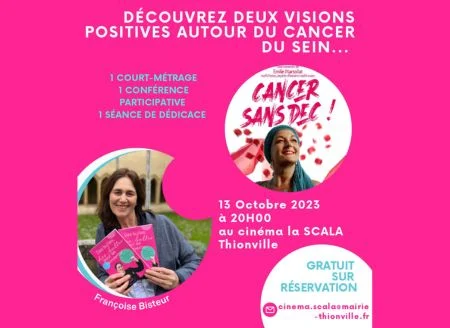 Elle a lancé l’INNOBULLUS Tours octobre Rose 2023 avec de nombreuses actions et l’une d’entre elles se déroulera en partenariat avec le Cinéma La Scala de Thionville. Elle a choisi avec Justine GIRARDI, directrice de la Scala, un court métrage décalé, “Cancer Sans DEC” réalisé par Emilie Marsollat qui s’est inspirée de sa propre expérience sur le sujet des réactions de l’entourage. Moment inoubliable assuré...
