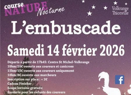La course nature nocturne L’Embuscade revient le samedi 14 février 2026 pour une nouvelle édition pleine d’ambiance et de sensations, au cœur de Volkrange – Thionville.