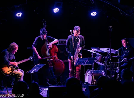 Christian Mariotto, batterie, Philippe Canovas, guitare, Nicolas Gegout, saxophones, Julien Moneret, contrebasse