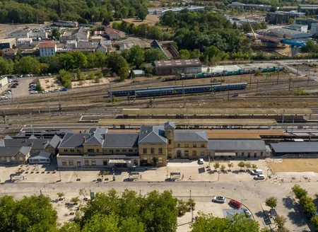 The railway station dates back to the middle of the 19th century. A first station was built on the left bank of the Moselle, about 800 meters from the ramparts of the city, in the suburb of Beauregard. The distinctive feature of this station lies in the fact it was a dead end, and the end of the Metz-Thionville line. When the Thionville-Luxembourg line opened in 1859, it became a transit station.