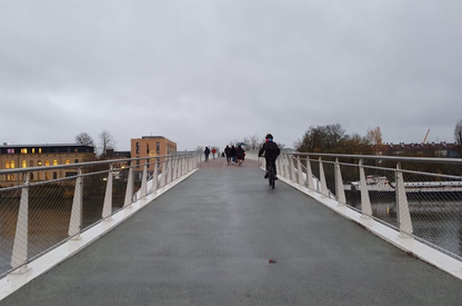 C’est dans cette optique qu’elle a décidé la création d’un axe piéton/cycle franchissant la Moselle. L’aménagement de ce quartier comprend donc une partie mobilité avec la construction d’une passerelle réservée aux déplacements doux depuis la gare jusqu’au centre-ville. De plus, la structure est accessible aux personnes à mobilité réduite.