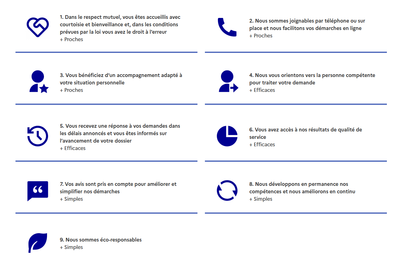 Services Publics + fixe 9 engagements pour répondre aux attentes prioritaires des Français, à savoir :