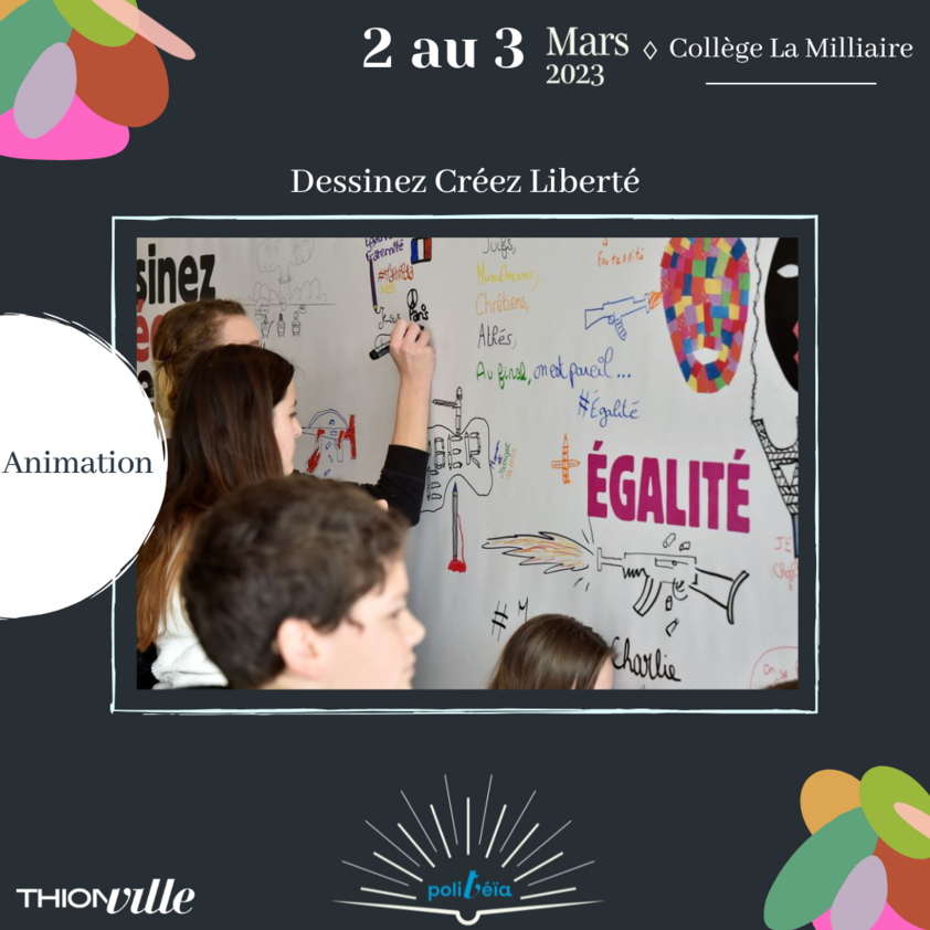 Dessinez Créez Liberté (DCL), fondée par Charlie Hebdo et SOS Racisme au lendemain des attentats de janvier 2015, est née d’une nécessité : initier la jeunesse au dessin de presse - en particulier à la satire et la caricature - et offrir au plus grand nombre (enseignants, animateurs jeunesse, bibliothécaires, éducateurs, personnel pénitentiaire, etc.) des outils pédagogiques originaux pour ouvrir les débats et aborder les thématiques qui font l’actualité et agitent la société. Sans tabou ni démagogie, ni frilosité intellectuelle. En mars, Dessinez Créez Liberté animera 4 séances de décryptages de caricatures et dessins de presse avec des classes de Collège. DCL est une association agréée et soutenue par le Ministère de l’Education Nationale et de la Jeunesse et par le Ministère de la Culture.