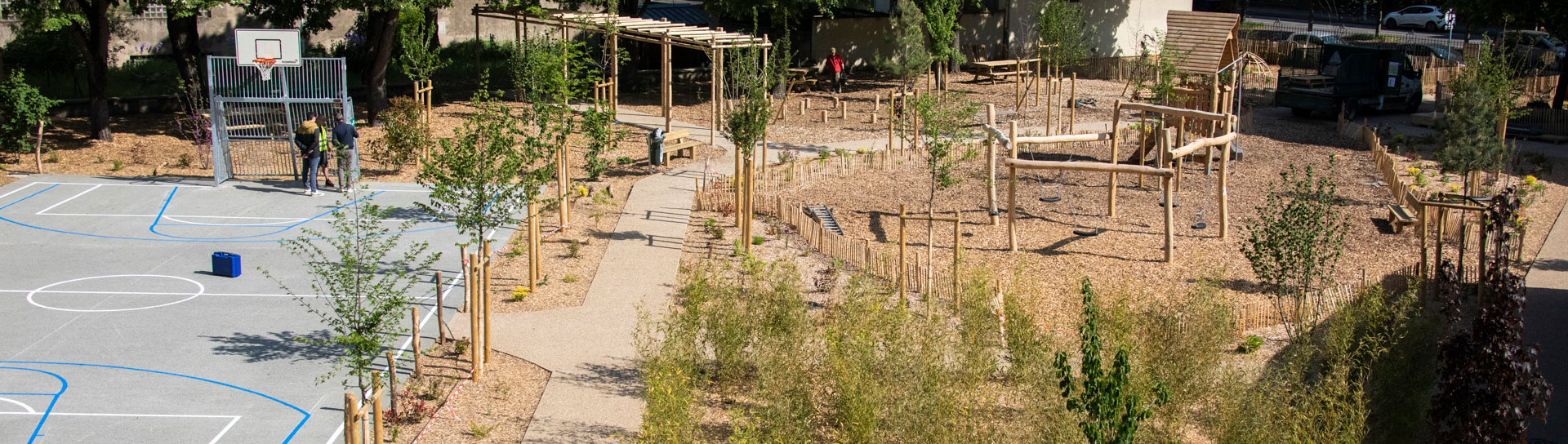 Quel que soit l’établissement, le projet consiste en l’ajout de végétation, une meilleure gestion de l’eau, la désimperméabilisassions d’une partie des sols, un travail sur la répartition des usages, l’ajout d’éléments ludiques et la diversification des aménagements proposés.