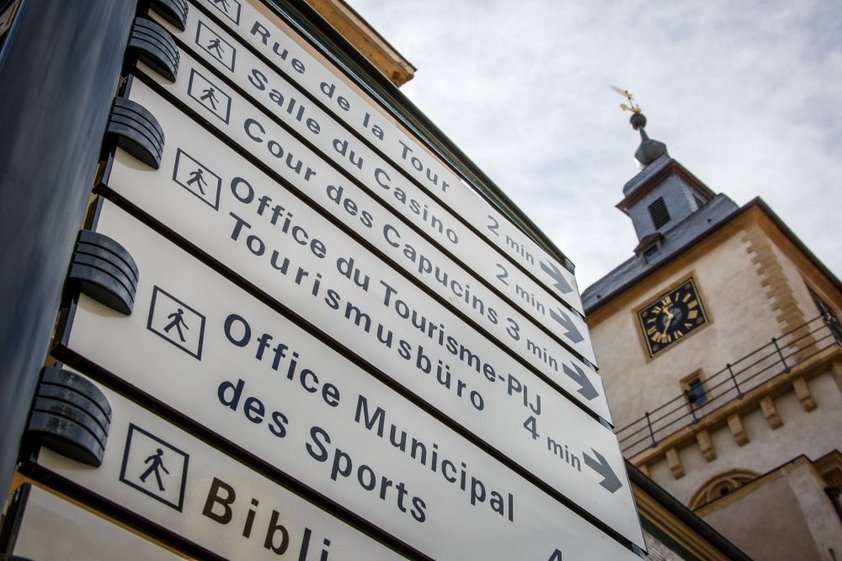 Une des actions du plan modes doux est la mise en place d'un jalonnement piéton. Le principe est simple : jalonner les principaux sites de la ville (culturels, sportifs, patrimoniaux, services publics…) en indiquant le temps de déplacement à pied.