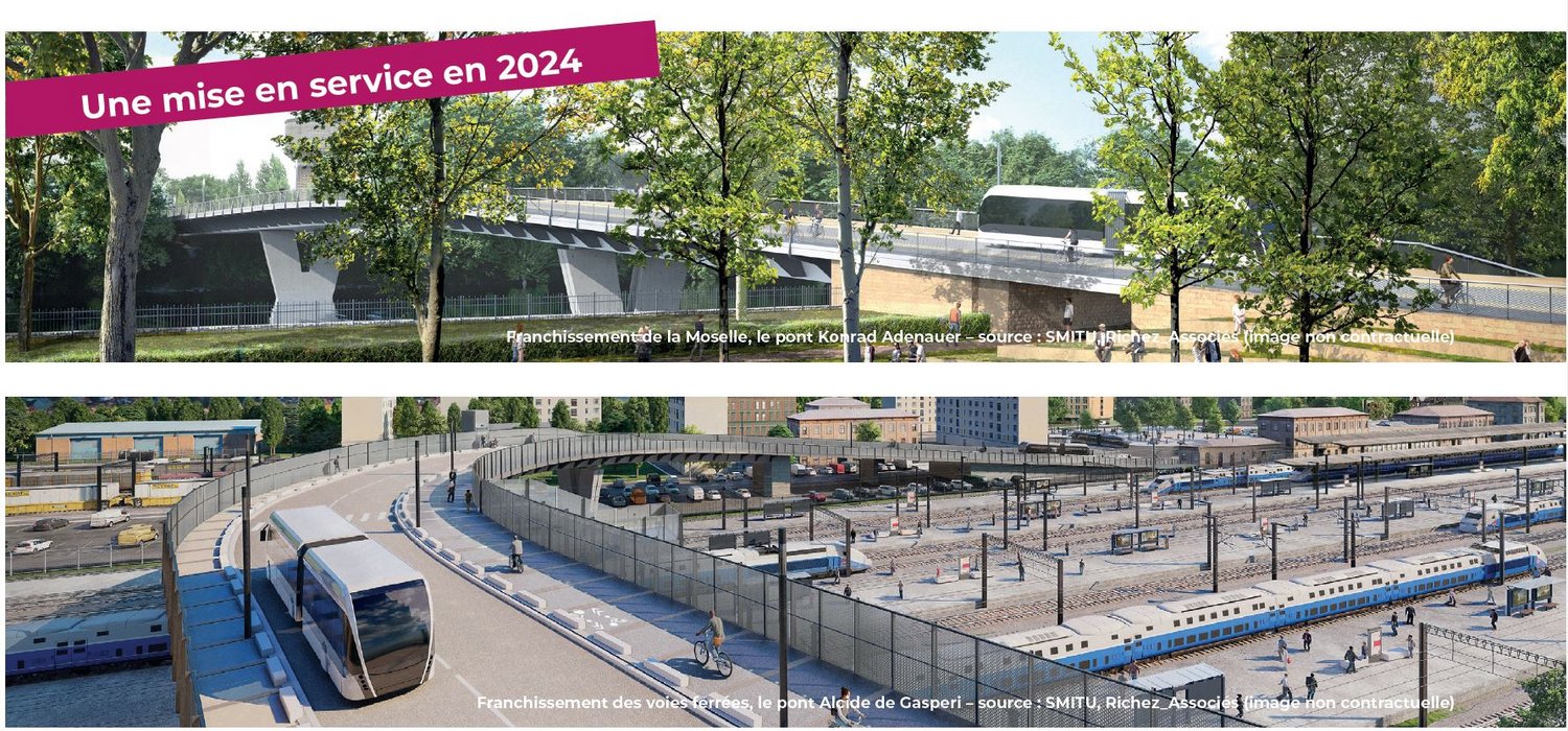 - Créer des voies dédiées au BHNS* (site propre) ou donner la priorité au BHNS au niveau des intersections. Contribuer au développement économique et à l’attractivité du territoire. Faciliter les déplacements transfrontaliers (amélioration de l’accessibilité à la gare, aménagement de trois parking relais)